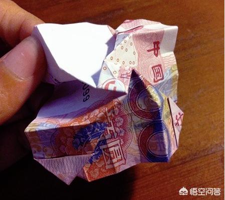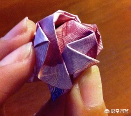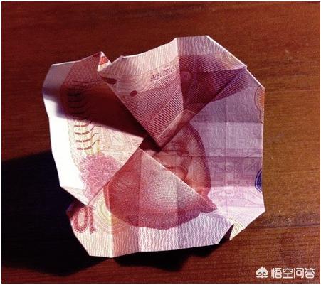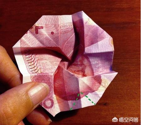 9、四边都捏好之后,整张钱就变得立体了,有了生动的螺旋外形。