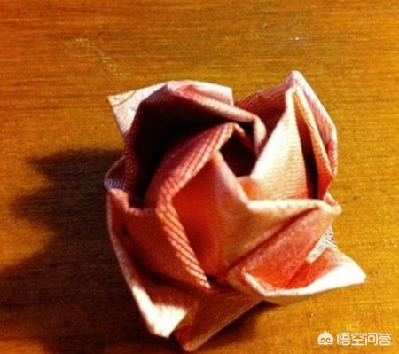 21/ 21第20步、用手掌心拖住底部,将上部往下按压,使其凹进去,这样,底部就凸出来了。再调节下花瓣的形状,OK,美丽的玫瑰花就折好了。