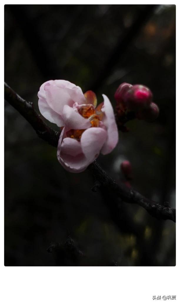 1、梅花拍摄,不仅是简简单单拍摄梅花的形态,更重要的是一种意境的表达。梅花树干玲珑苍劲,极富质感,与梅花淡雅清新在色彩上形成强烈对比,梅花的魅力就在于其迎风斗雪的风骨,所以,拍摄梅花,形势应该排在第一位,梅花枝干形态对构图重要甚至超过梅花本身,选枝入图是一幅图片是否吸引眼球的前提;