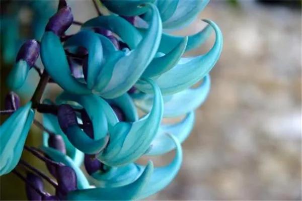 五.绿玉腾花也非常的稀有,只能在菲律宾见到,并且也需要到热带雨林中去寻找。常见的颜色为绿色以及蓝色,所以又被称之为玉葡萄。由于绿玉藤所需要的生长环境遭到了破坏,所以现在已经很难找到。