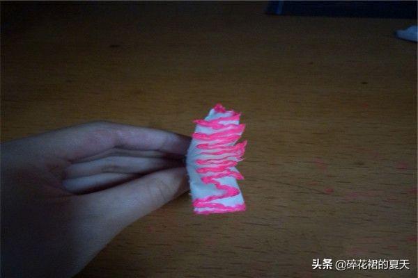 1从卷装卫生纸上扯两截卫生纸下来,把他们重叠在一起。把两截重叠好的卫生纸像折扇子一样折成图片上的样子。