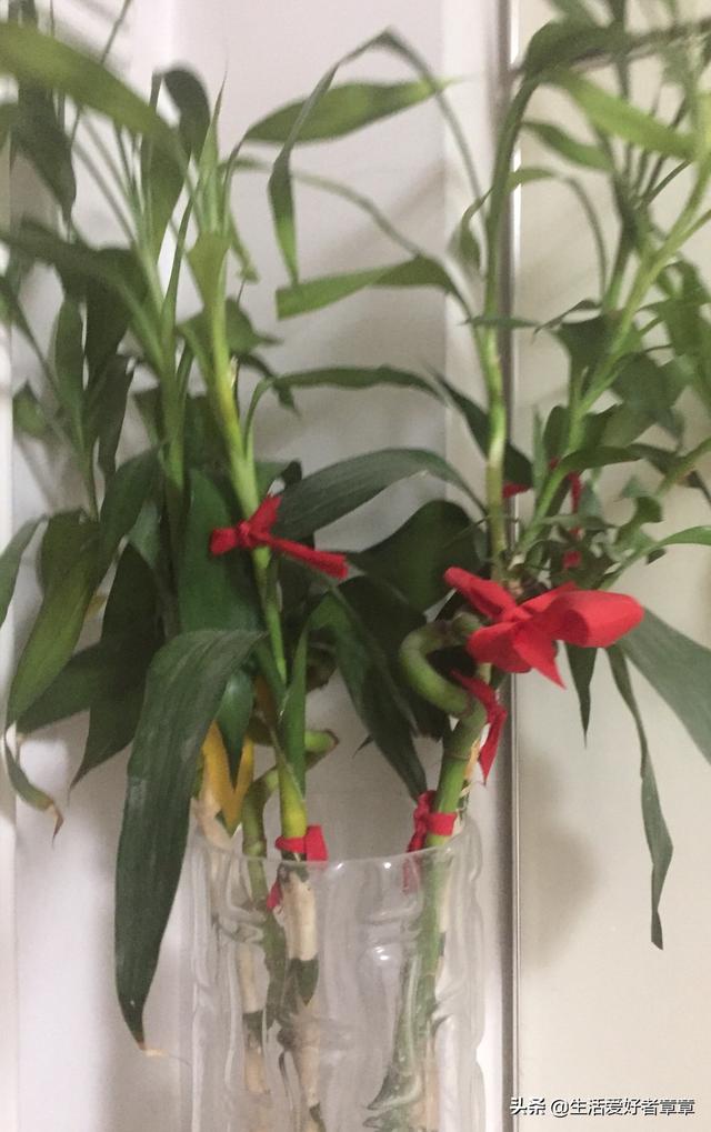 富贵竹:富贵竹听着都好听的一个名字,加上价格挺便宜的,十块钱一把一把十根,养富贵竹感觉挺好养,我的一把富贵竹从四年前买的一直绿油油的,养富贵竹不用天天换水平时看水少了加点水进去,在放进去一颗生锈的钉子,偶尔把淘米水倒进去一些,也可以买点营养液给它补充下营养,我家富贵竹可能生长的太好了我婆婆竟然以为我给家里买的假的竹子[捂脸][捂脸][捂脸][捂脸],她问我老公这个是真的假的[捂脸][捂脸]
