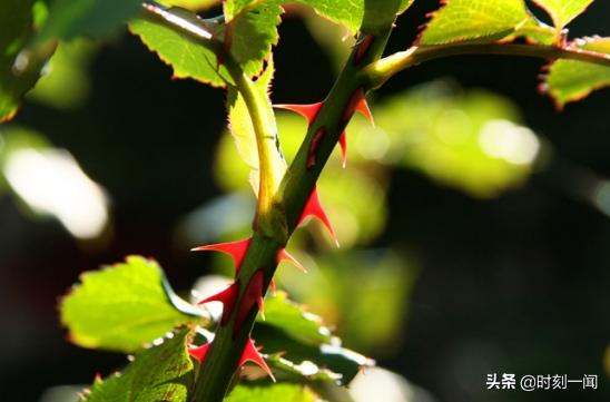 玫瑰刺:比较硬,分布密集,尖细;