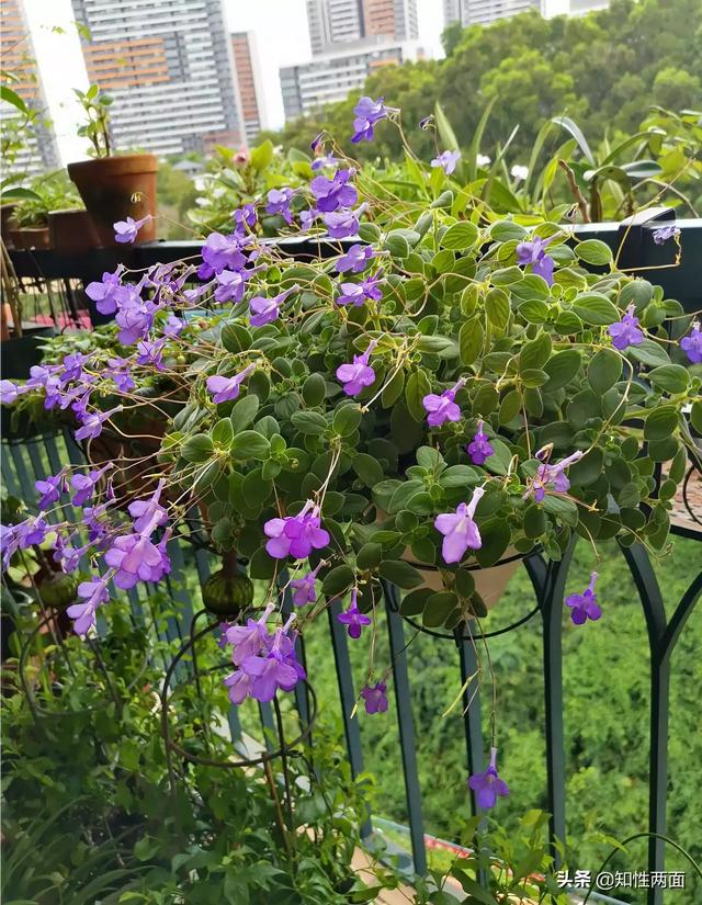 海豚花又名海角樱草花,属于多年生草本植物,其叶片翠绿,花色分为紫色和白色,因其在花苞时期,酷似海豚形状而得名,超好养护,可全年开花,我在广东,一般开花在冬春季节,可以挂在的窗台、阳台或者是室内,养的好的话春节时期开花尤为喜庆。