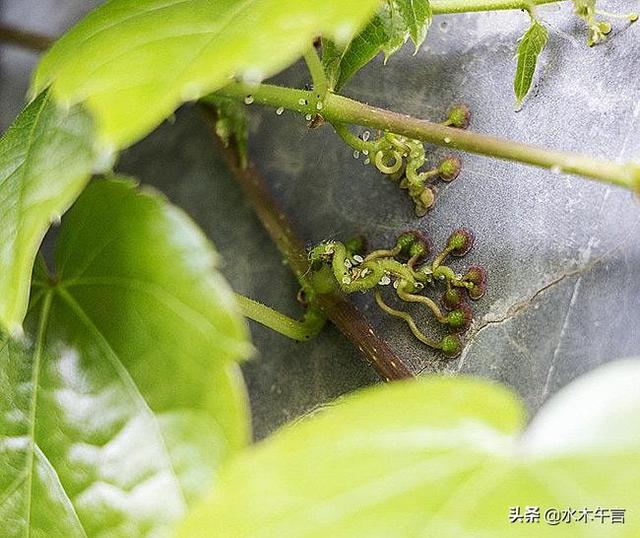 爬山虎就是这样一脚一脚地往上爬。如果你仔细看那些细小的脚,你会想起图画上蛟龙的爪子。