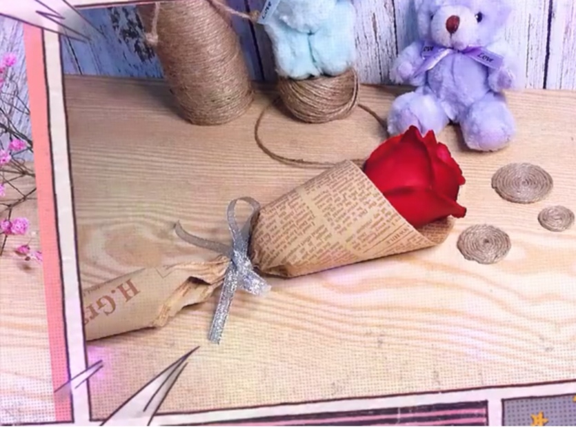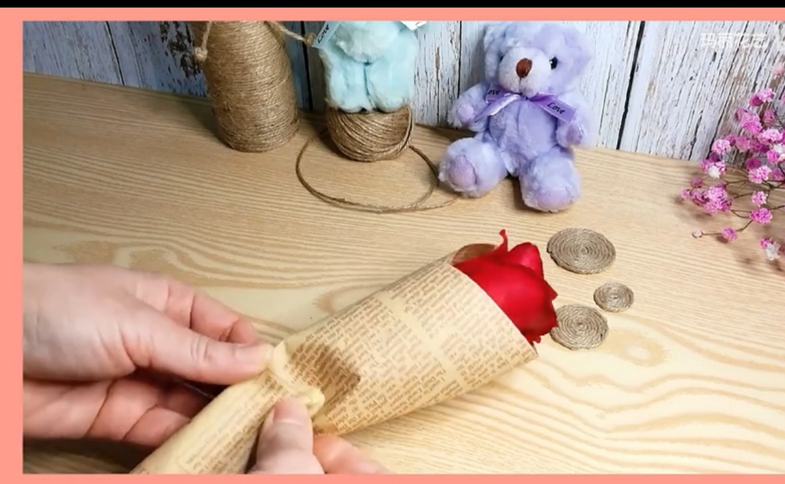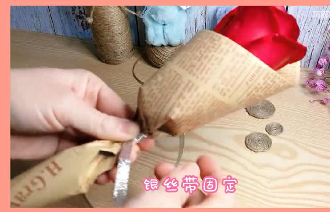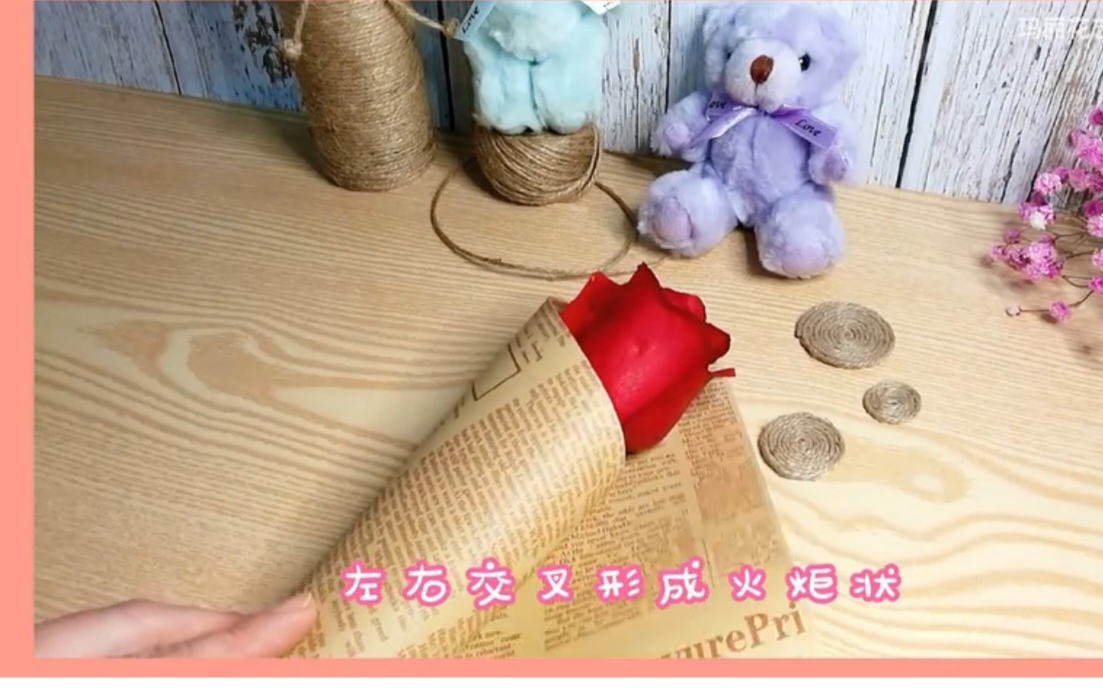 然后将左边的角向右卷,右边的角向左卷,包装成火炬状。
