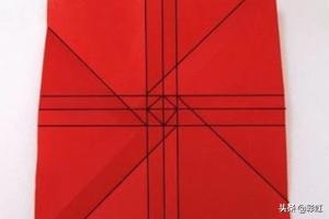 具体的点位和折叠方式可以参考折纸图示中所示的样式来进行折叠操作。折叠完成之后将折纸模型展开,就可以看到在纸张的中心保留有这一步折叠之后留下的一个小的四方形。