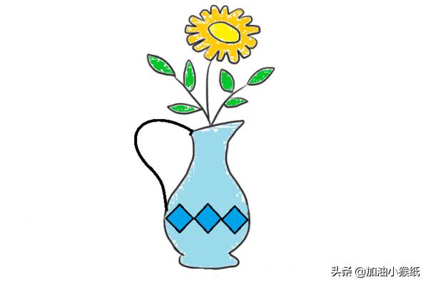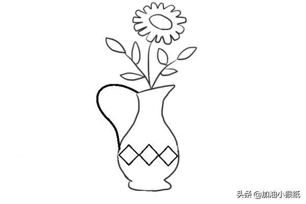 6、然后画出花瓶的把子和花瓶上面菱形的花纹。