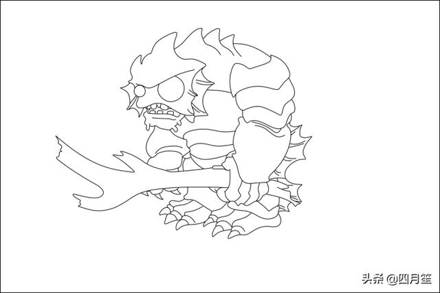 3 去掉上步轮廓线中没用的线条,重新描边,得到深海巨人的简笔线图。