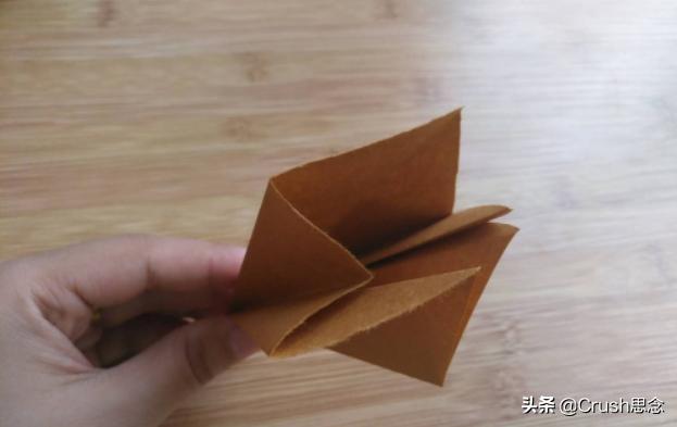 第九步:将上面的角向下翻折,四面按照相同的方式。