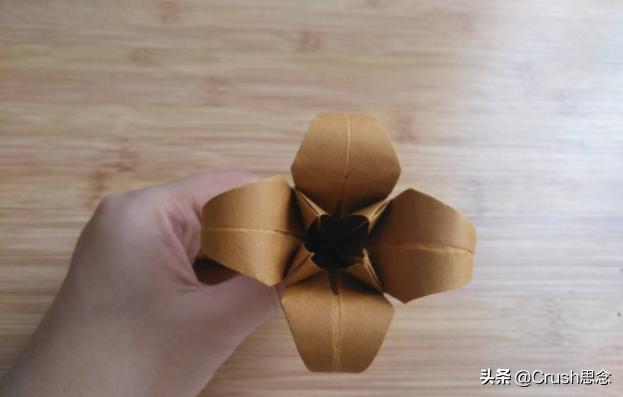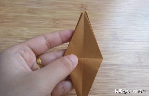 第八步:展开折叠的形状,沿着折痕向外侧压,形成图3的形状,四面相同。